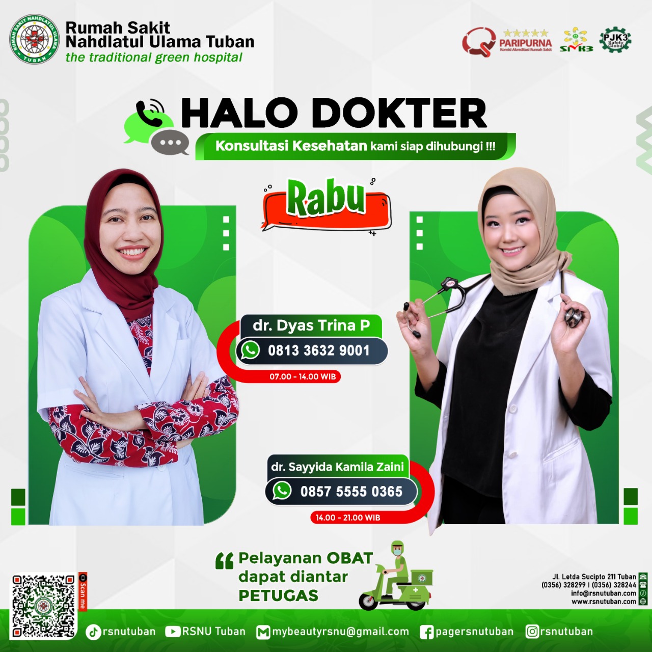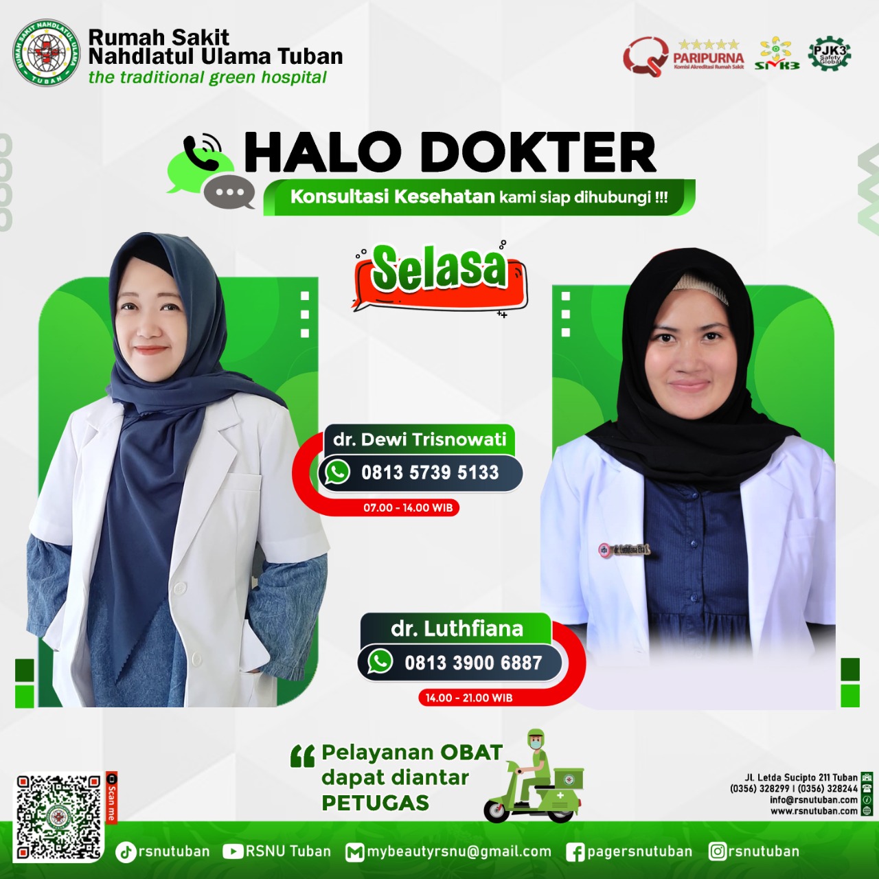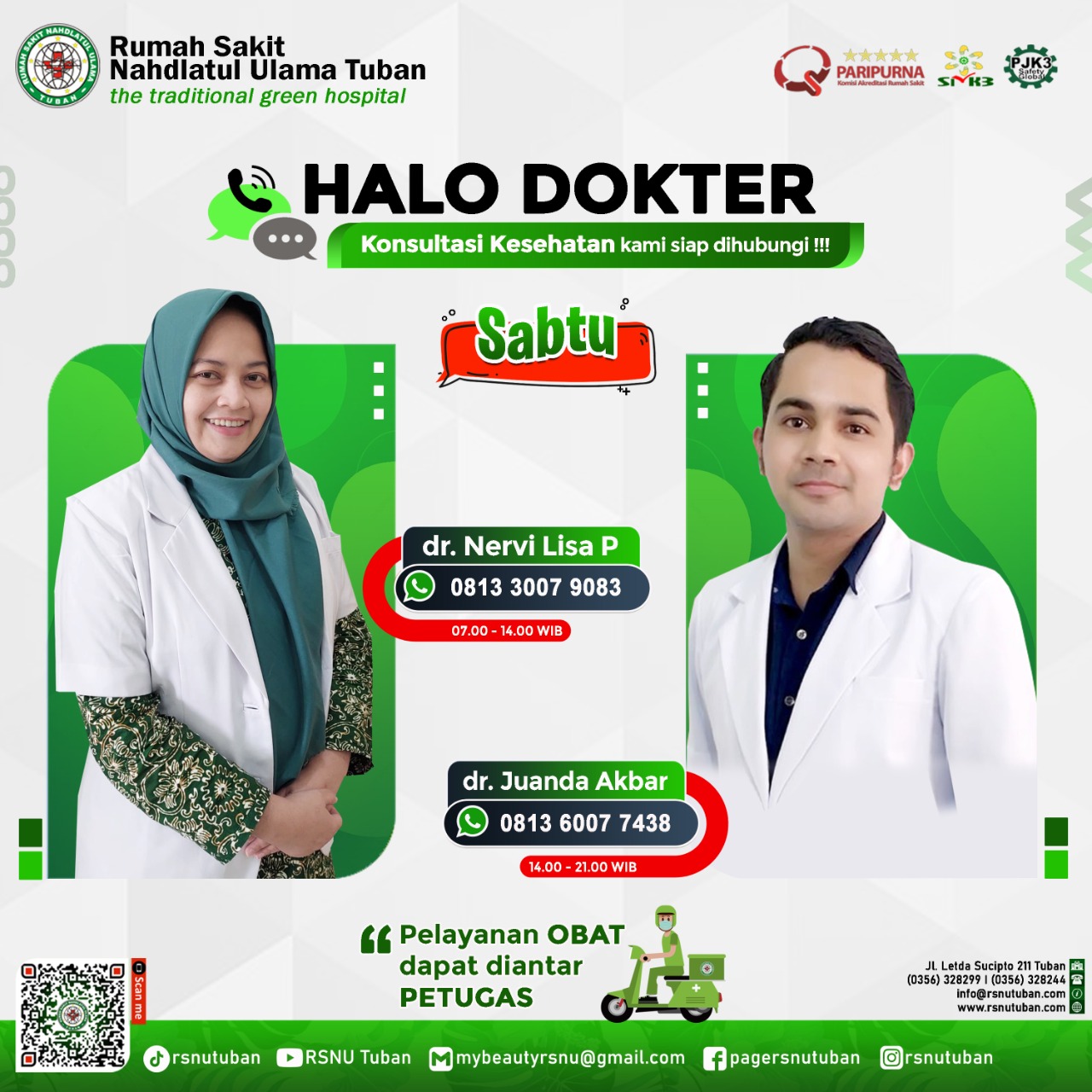 RSNU TUBAN | Alamat : Jl. Letda Sucipto 211 Tuban - Jawa Timur | Kode Pos : 62319 | Telp. Informasi/CS : (0356) 328299 | IGD/Ambulance : (0356) 328244 | Email : info@rsnutuban.com | Website : www.rsnutuban.com