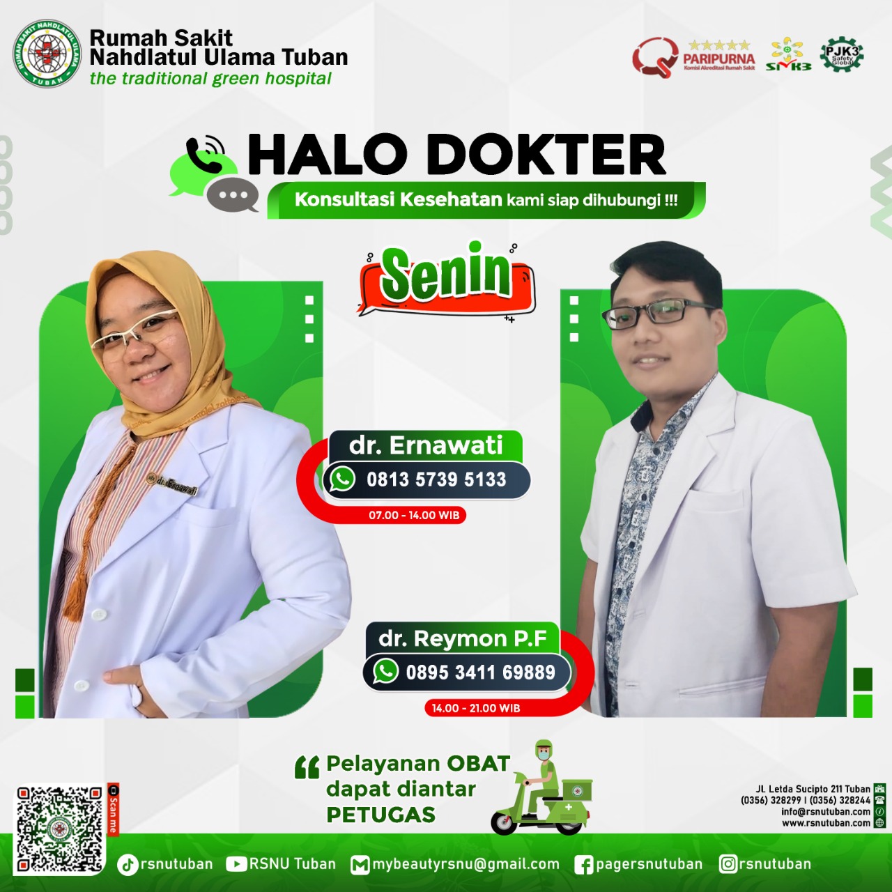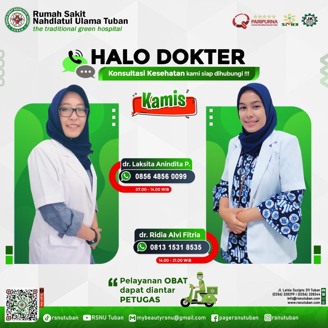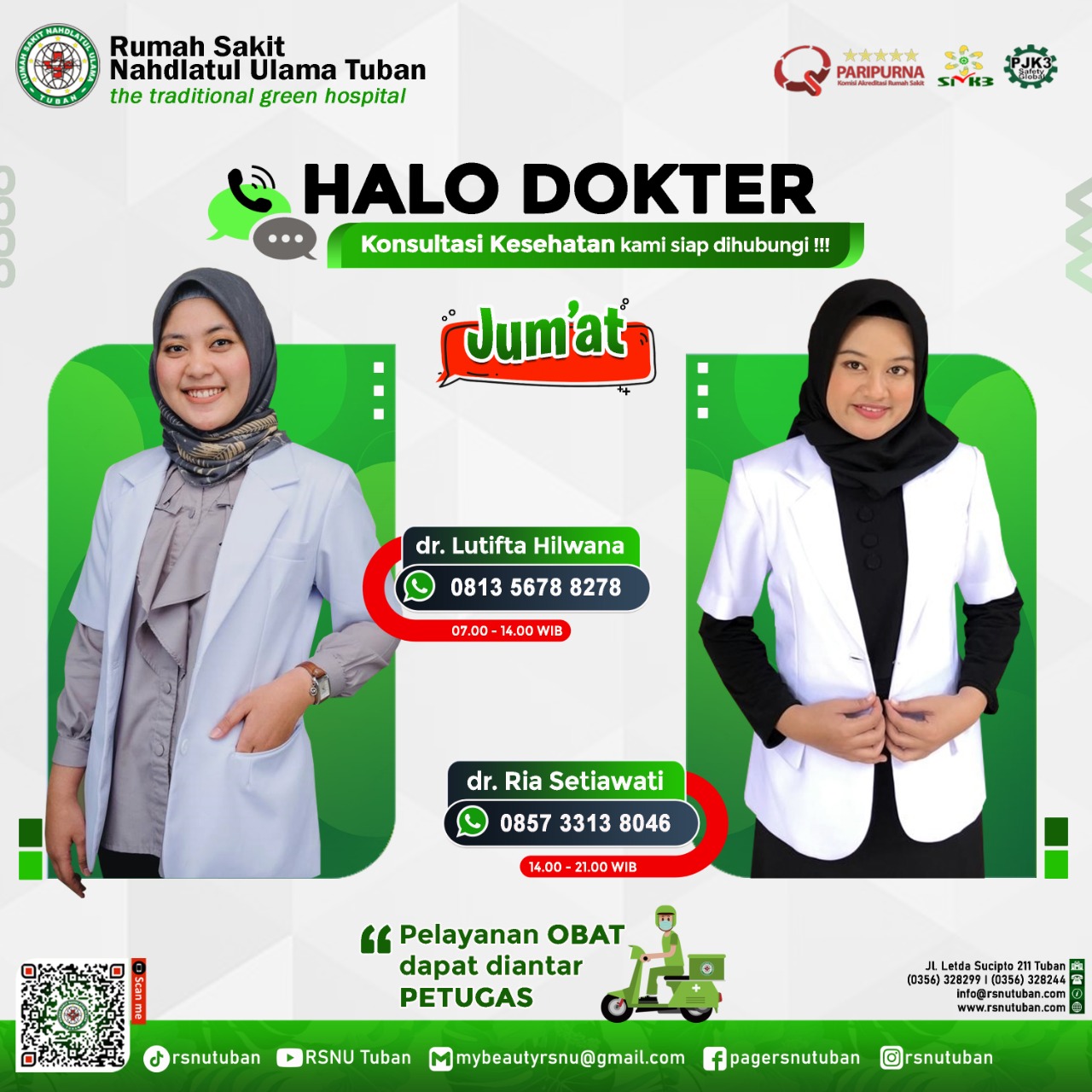RSNU TUBAN | Alamat : Jl. Letda Sucipto 211 Tuban - Jawa Timur | Kode Pos : 62319 | Telp. Informasi/CS : (0356) 328299 | IGD/Ambulance : (0356) 328244 | Email : info@rsnutuban.com | Website : www.rsnutuban.com
